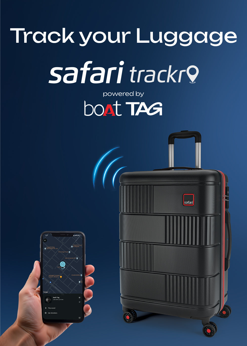 Safari Trackr GPS Enabled Black Trolley Bag with BoAt tag, TSA Lock, Dual wheels and Wet Pouch Organized Interior
