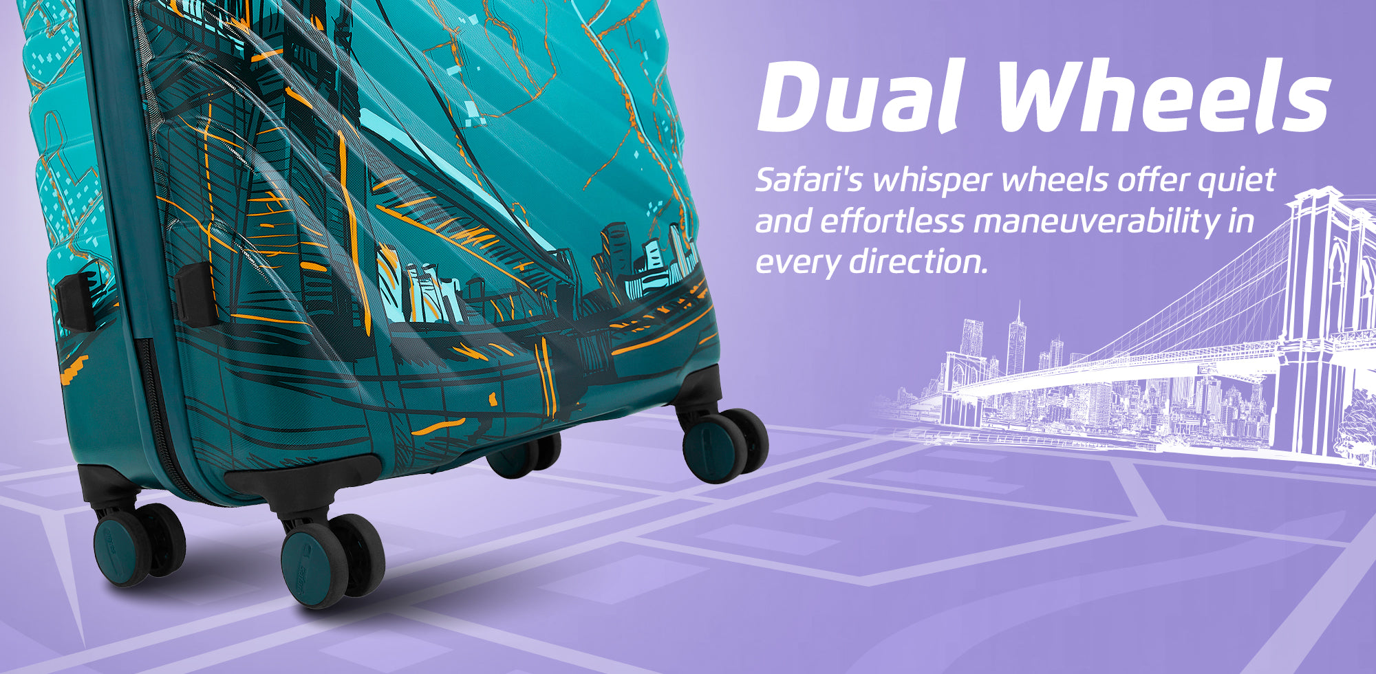 Safari's whisper wheels offer quiet and effortless maneuverability in every direction.