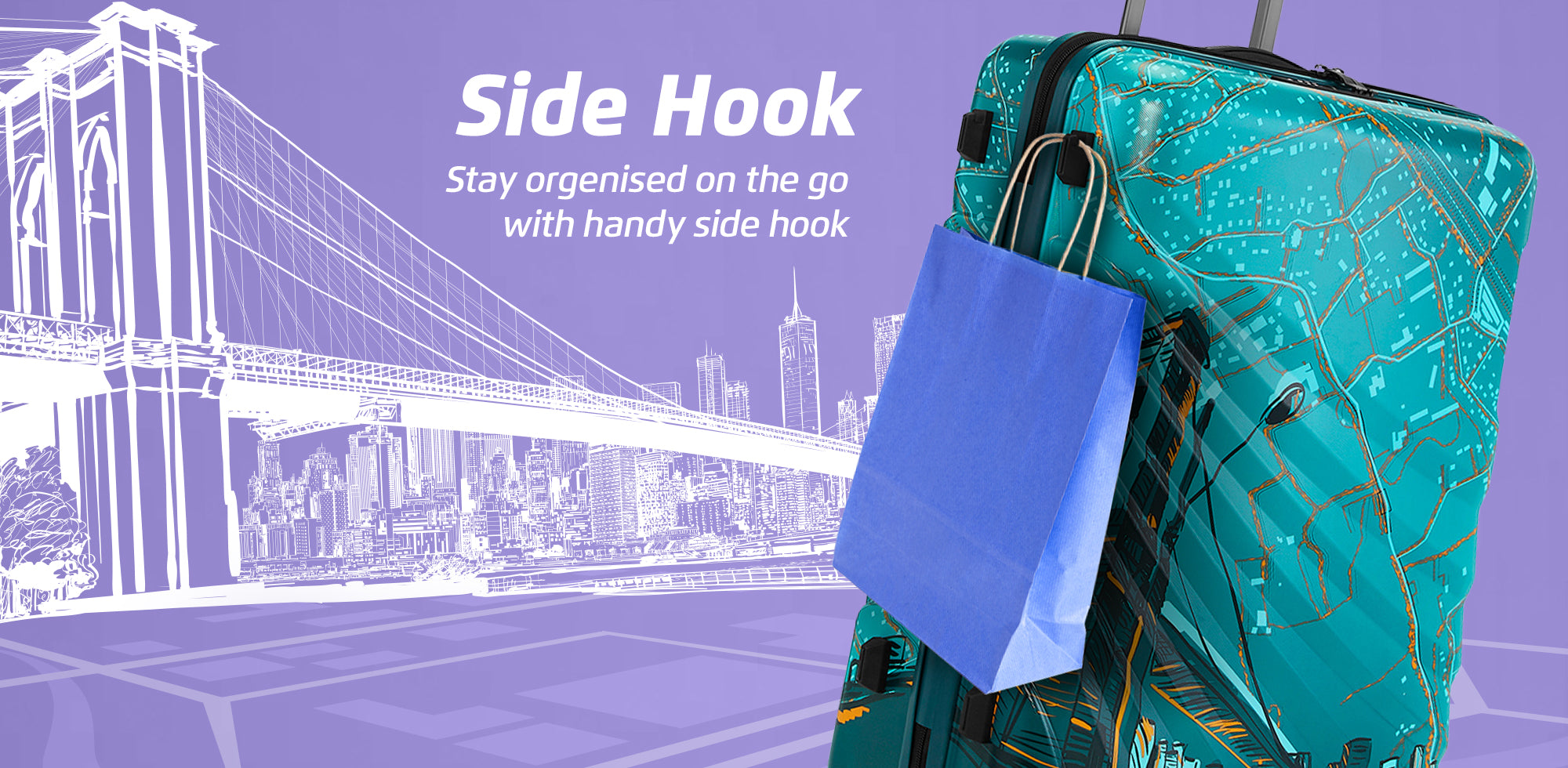Safari Brooklyn Printed Teal Trolley Bag with TSA Lock, Dual wheels, Side Hooks and Wet Pouch