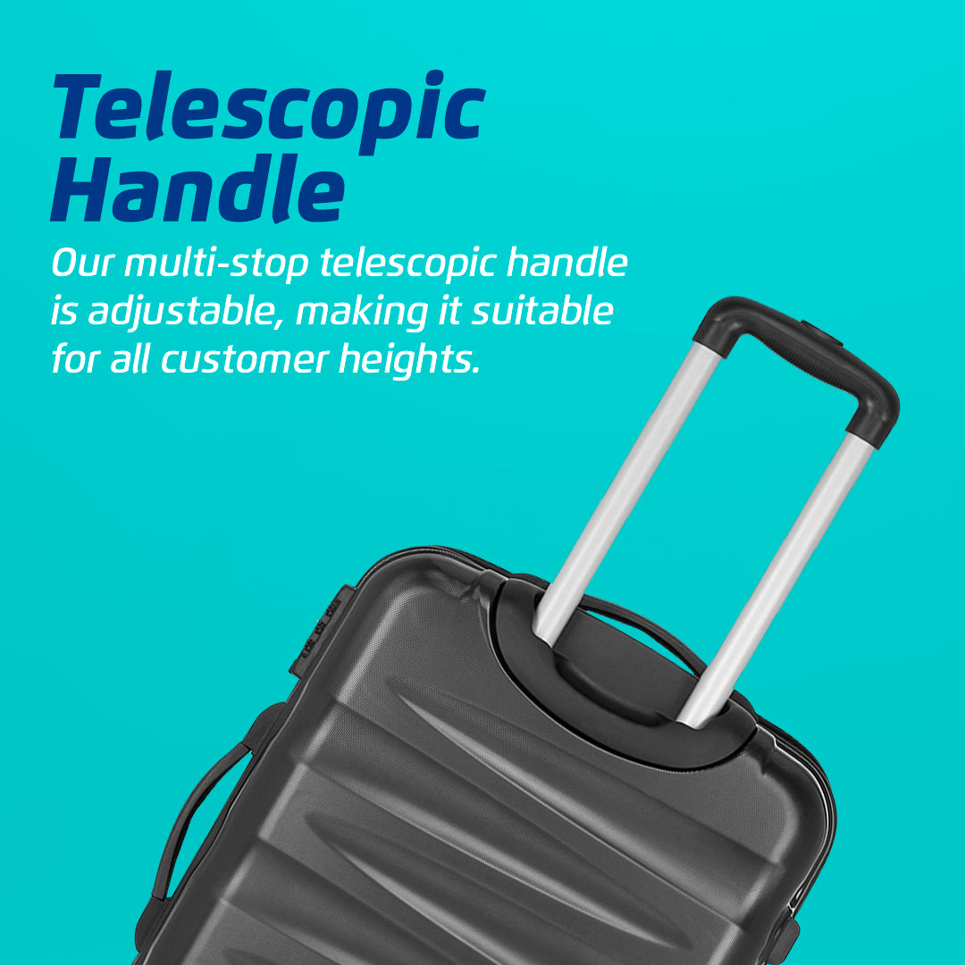 Our multi-stop Push Button Trolley handle is adjustable, making it suitable for all customer heights.