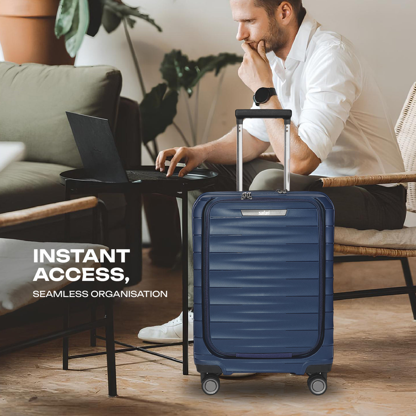 Safari Select Aerolite Blue Cabin Trolley Bag with Laptop Compartment, TSA Lock, Dual wheels and Anti-Theft Zipper