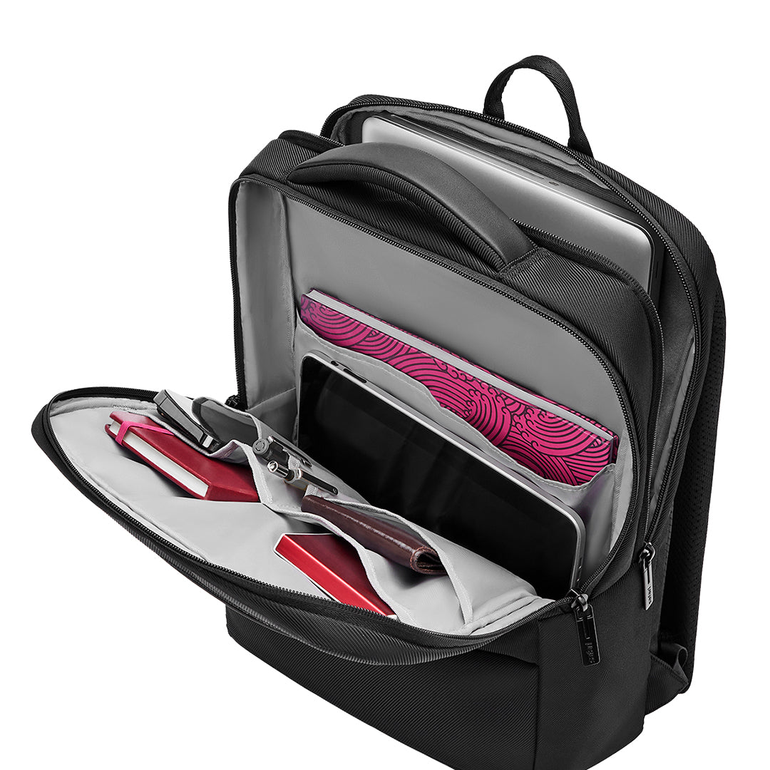Carry your backpack with ease owing to the Soft Padded Handle or by sliding it in your luggage trolley with the Smart Sleeve