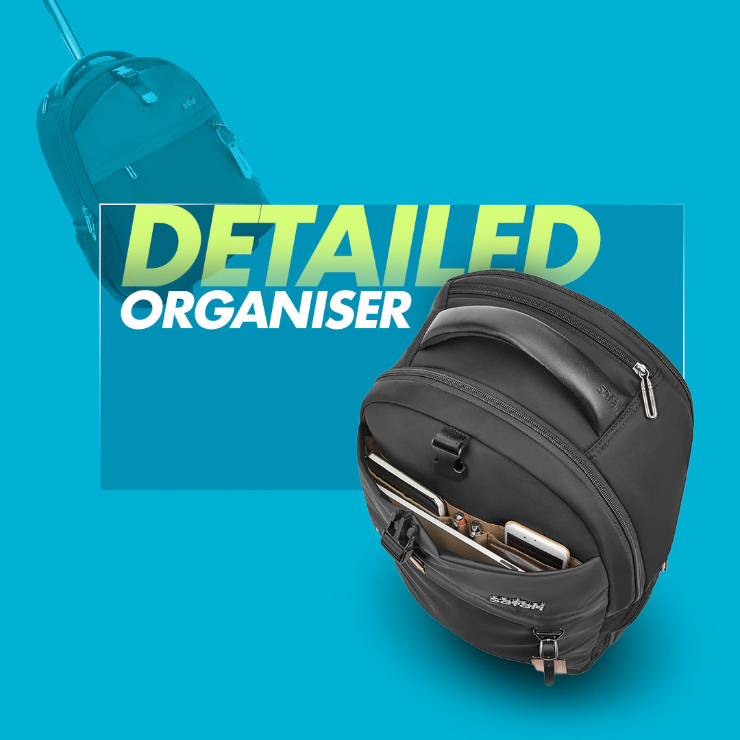 Carry your backpack with ease owing to the Soft Padded Handle or by sliding it in your luggage trolley with the Smart Sleeve